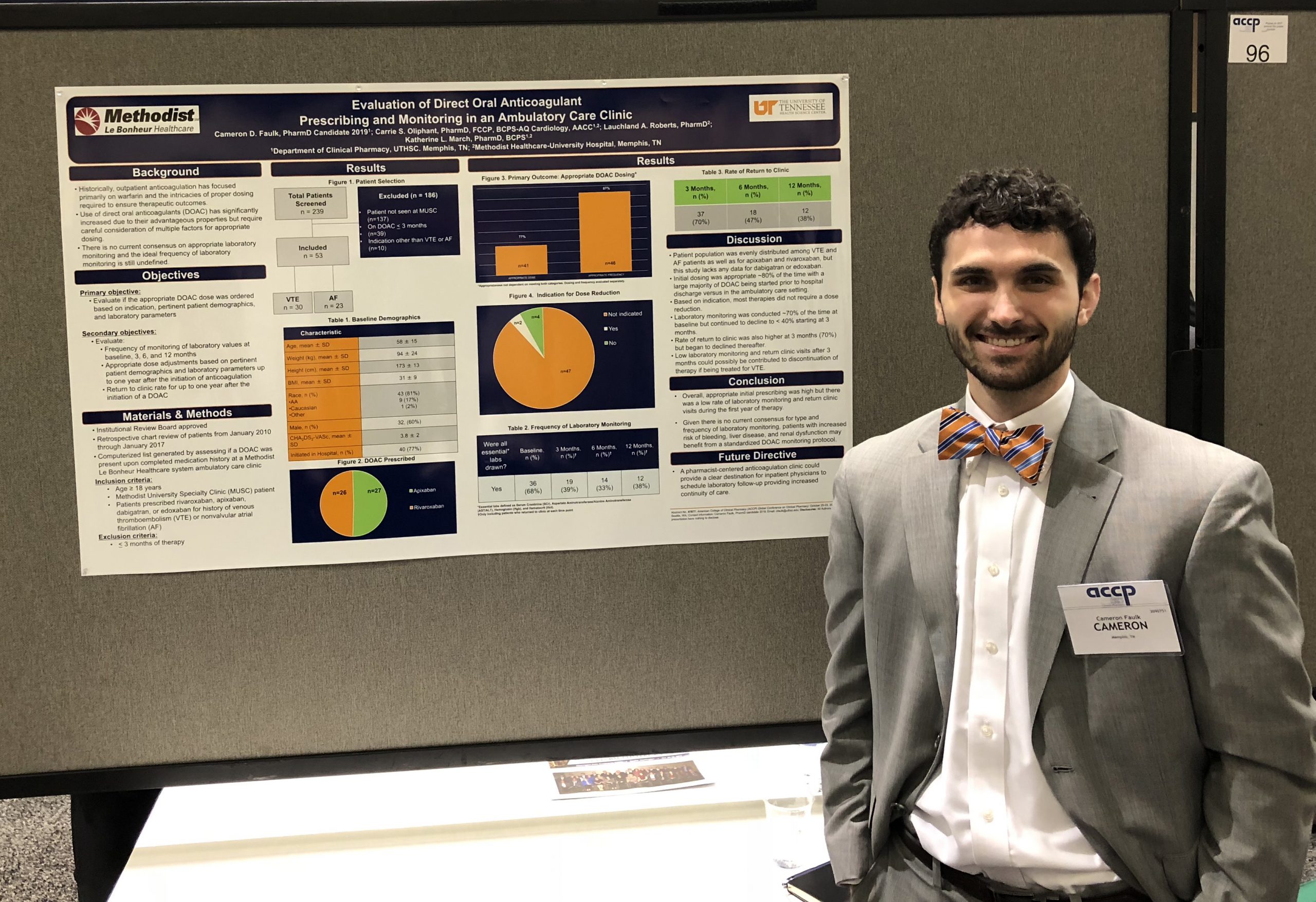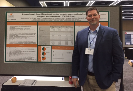Shaun Rowe, PharmD, BCPS, BCCCP, FNCS, Associate Professor in the Department of Clinical Pharmacy and Translational Science, and Justin Gatwood, PhD, MPH, Assistant Professor in the Department Clinical Pharmacy and Translational Science, both presented posters at the meeting as did Kevin Van Maldeghem (P4, Nashville) and Selena Warminski (P4, Memphis).