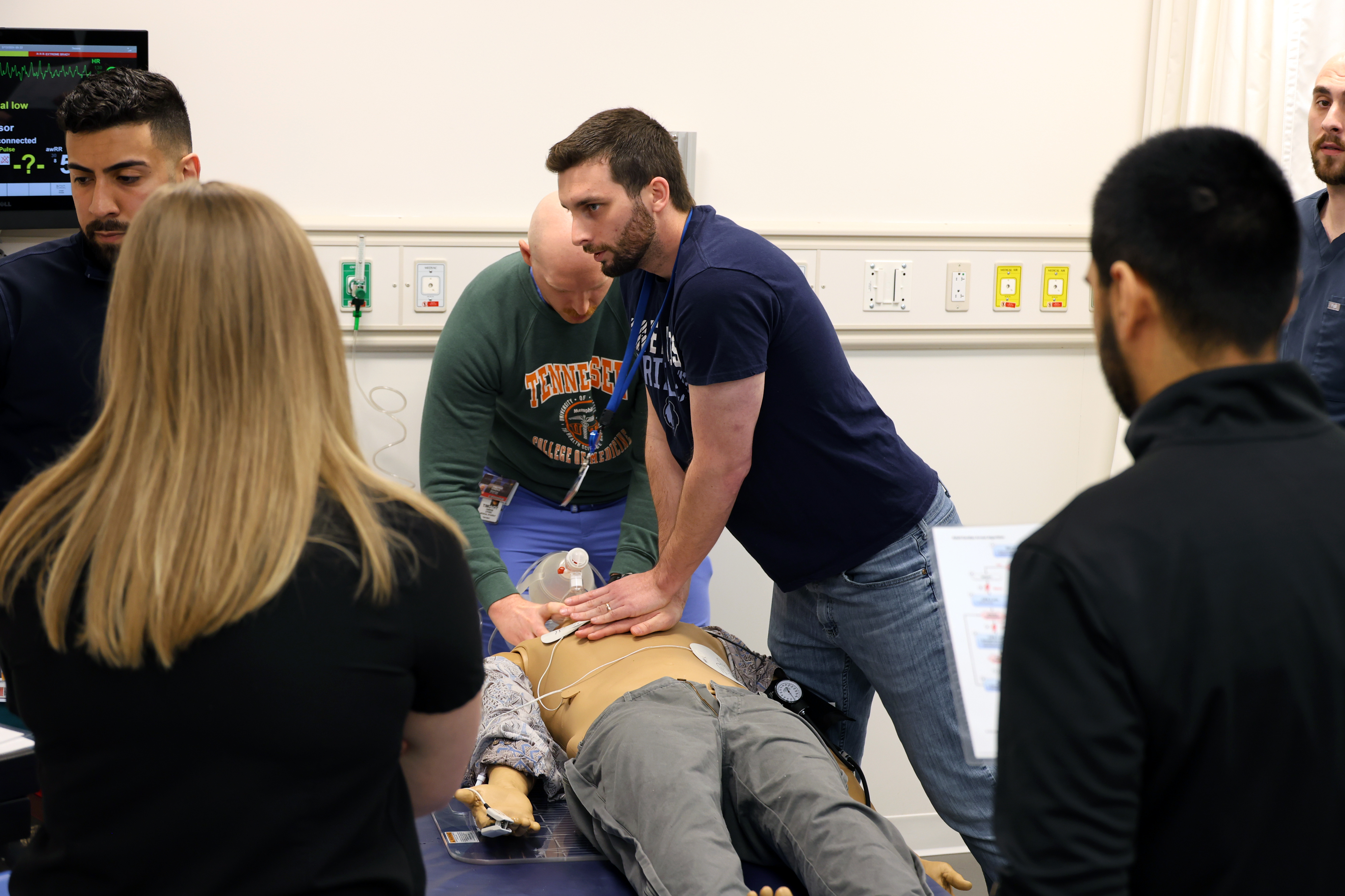 On March 13, a select group of the University of Tennessee Health Science Center College of Pharmacy P3 and P4 pharmacy students and 4th-year UT Health Science Center College of Medicine students participated in an interprofessional education (IPE) event with an advanced cardiac life support (ACLS) simulation at the UTHSC Center for Healthcare Improvement and Patient Simulation (CHIPS).